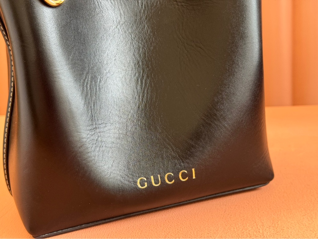 【Complete Packaging】GG Emblem Series Mini Bucket Bag The brand-new GG Emblem series presents a fresh interpretation of the timeless elegance and exquisite craftsmanship of the brand. This mini bucket bag features an internal compartment, maintaining both style and practicality.