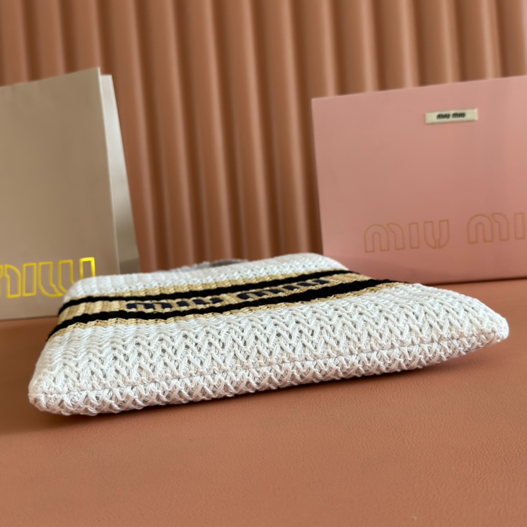 【Complete Packaging Included】🍒M brand🍒 5BG248, imported Rafi straw woven cotton twill tote bag. This crochet tote bag is decorated with vibrant color patchwork patterns. The bag body features the iconic Miu embroidery logo. Together with the retro and exquisite craftsmanship, it creates a striking style. It has a cotton lining, is ultra-lightweight, has an extremely large capacity, and is more suitable for small-sized vertical formats, making it an excellent choice for commuting to work, going out, or traveling. It is suitable for all seasons. The actual product is super beautiful. Carry it and you are the queen of fashion. Size: 30X38CM