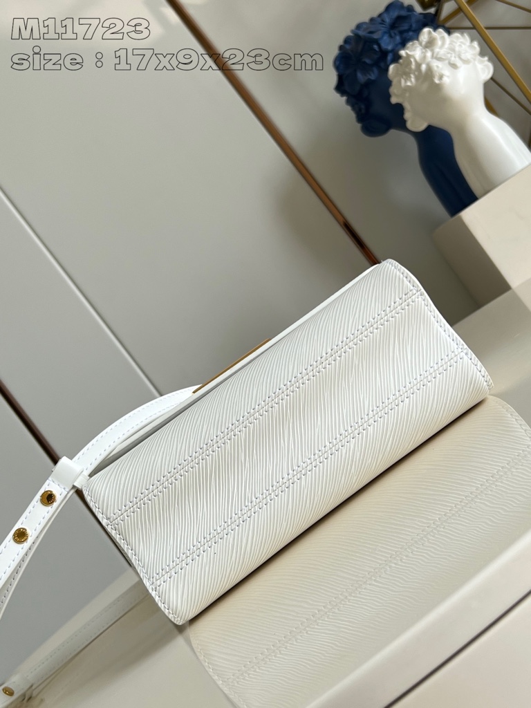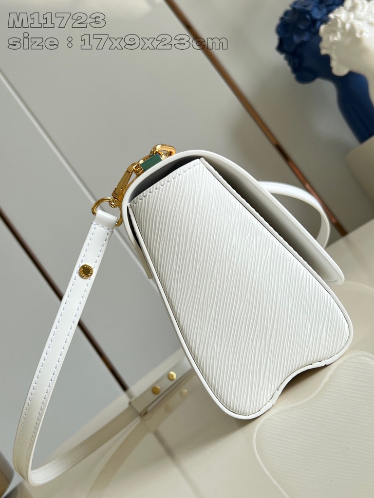【Exclusive Live Photos M11723 White】This medium-sized Twist handbag of model M11724 features the exquisite texture of Epi leather, with a cowhide interior and smooth cowhide trim. The enamel Monogram flowers are suspended on a slender chain, and the detachable and adjustable shoulder strap offers options for carrying on the shoulder or as a crossbody bag. Dimensions: 17 x 9.5 x 23 cm (height x width x length)