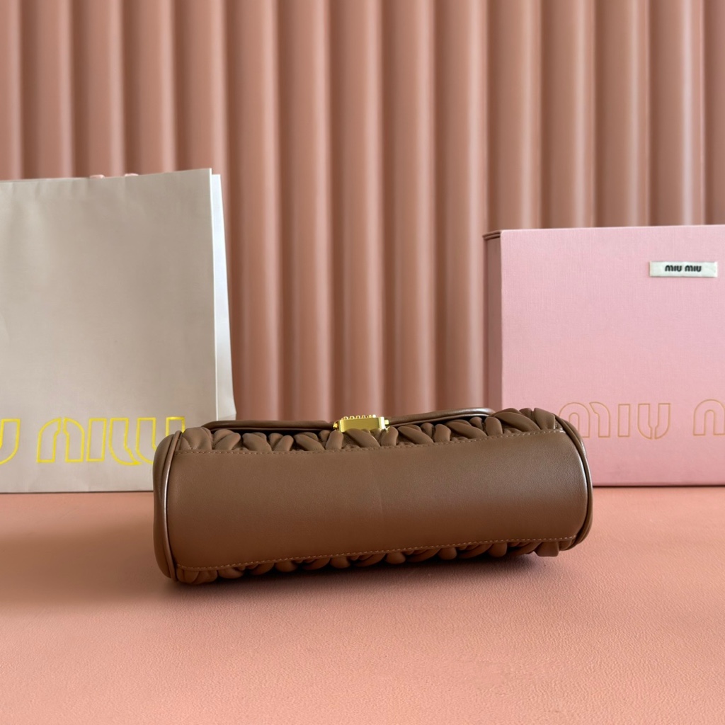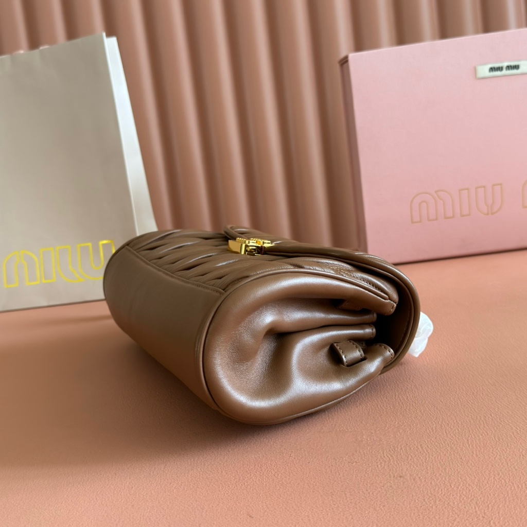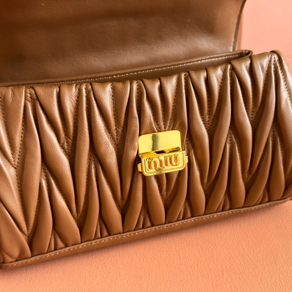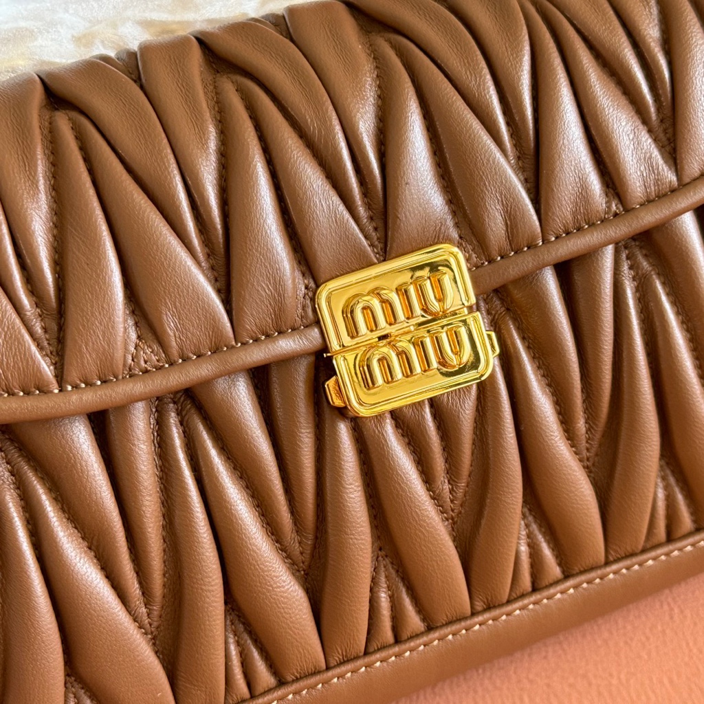 【Original Leather Configuration Packaging】MiuM New Product French Bag. This single-shoulder bag retains the classic design, featuring a lightweight and padded leather construction, which is unique. It is made of top-quality calfskin material, paired with an elegant front flap and adjustable metal shoulder strap. It has a variety of styles, is exquisite and elegant, casual and relaxed. It looks good in any combination, suitable for daily wear, casual leisure, commuting to work, etc. Model: 5bd266. Dimensions: 24X13.5X9cm.