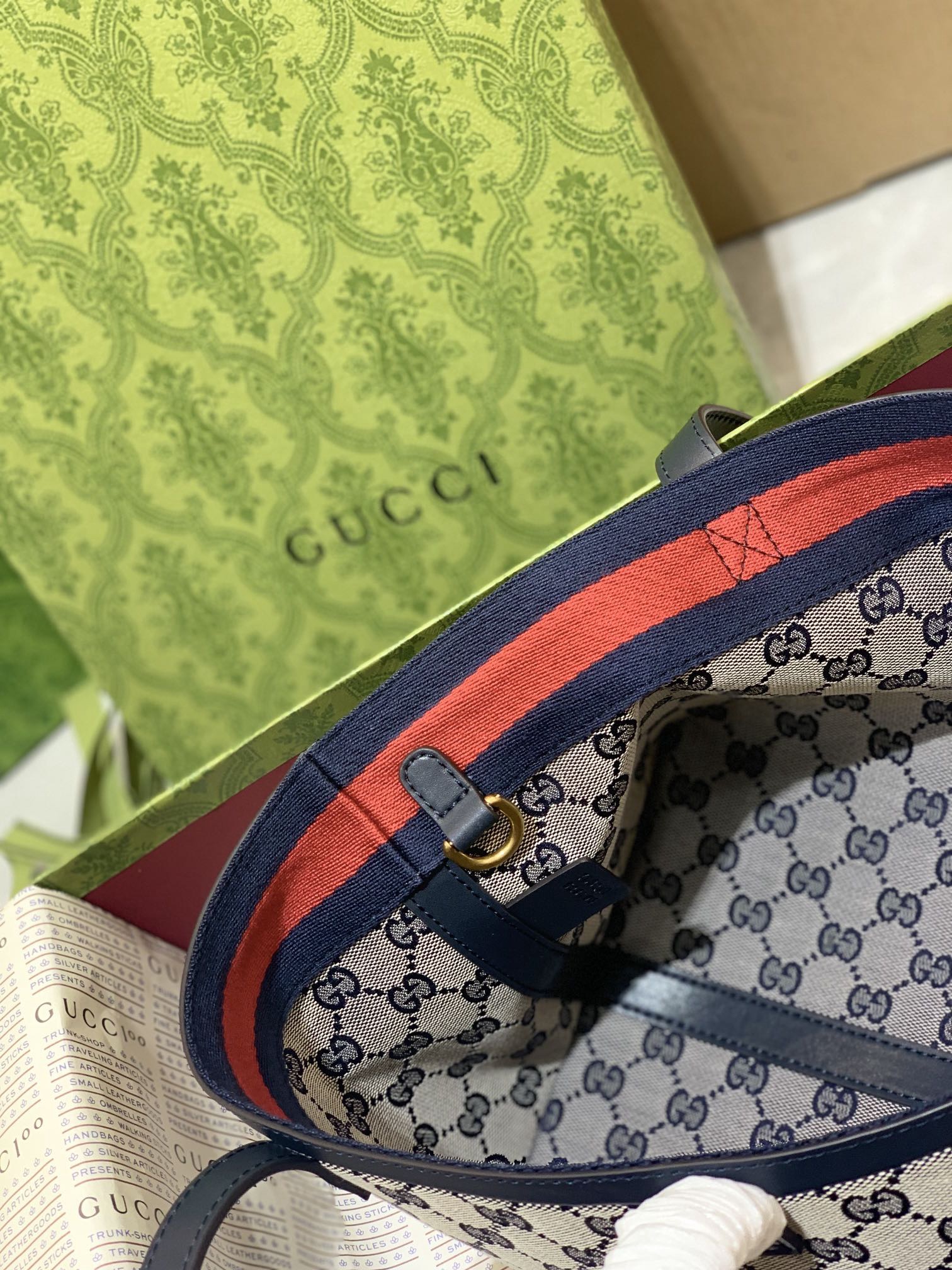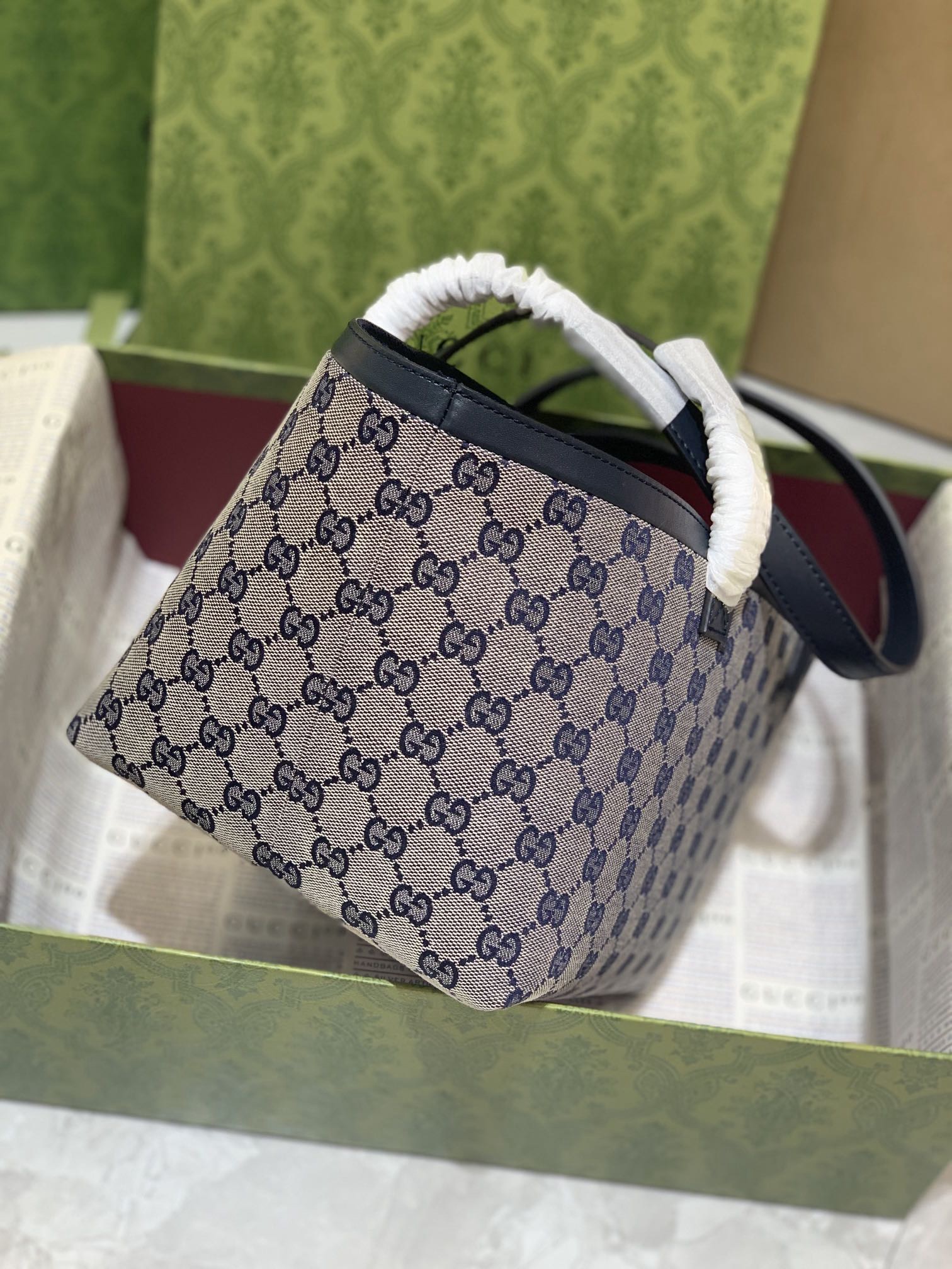 The Gucci Totissima collection was meticulously curated by Creative Director Sabato De Sarno. Combining the word “tote” with the Italian suffix “issima” meaning “highest”, this handbag showcases its practical functionality and timeless style. The inner webbing edging is crafted with meticulous craftsmanship, concealing the seams of this beige and blue small tote bag.