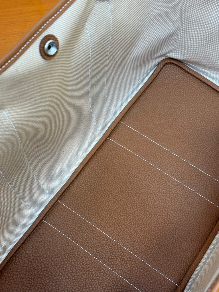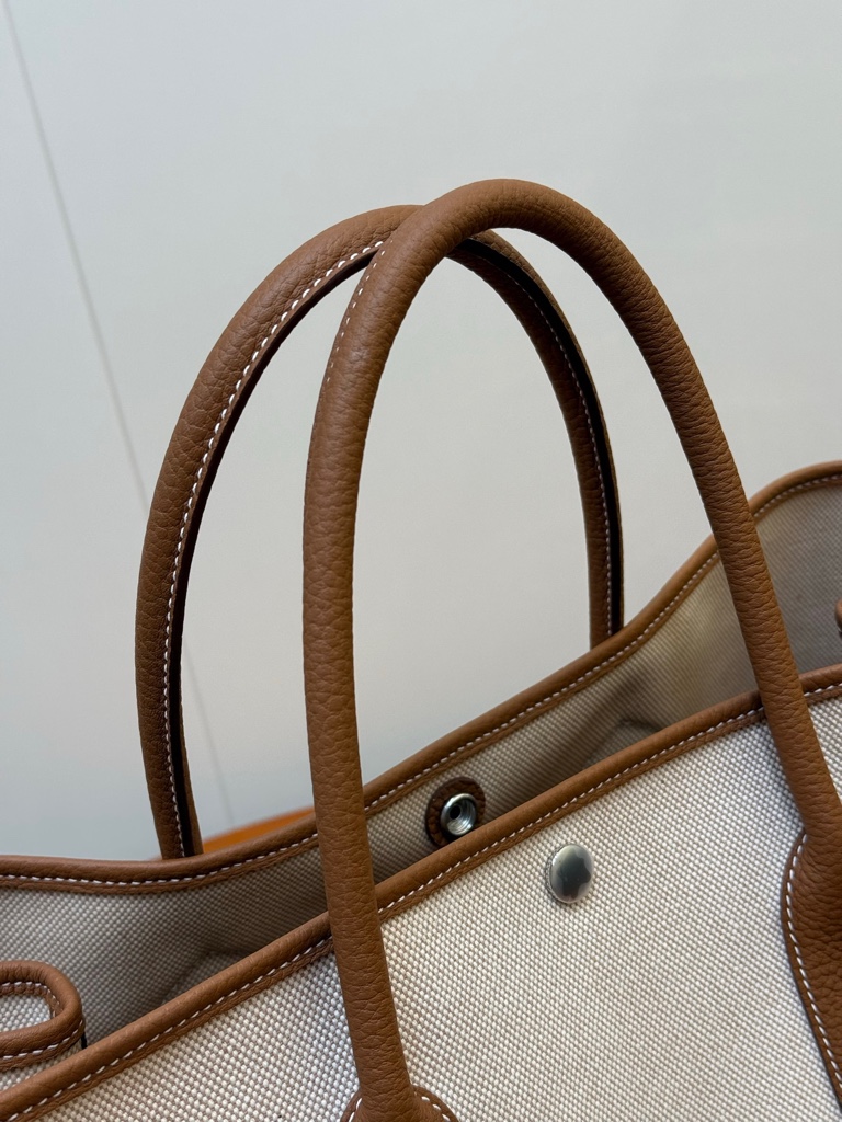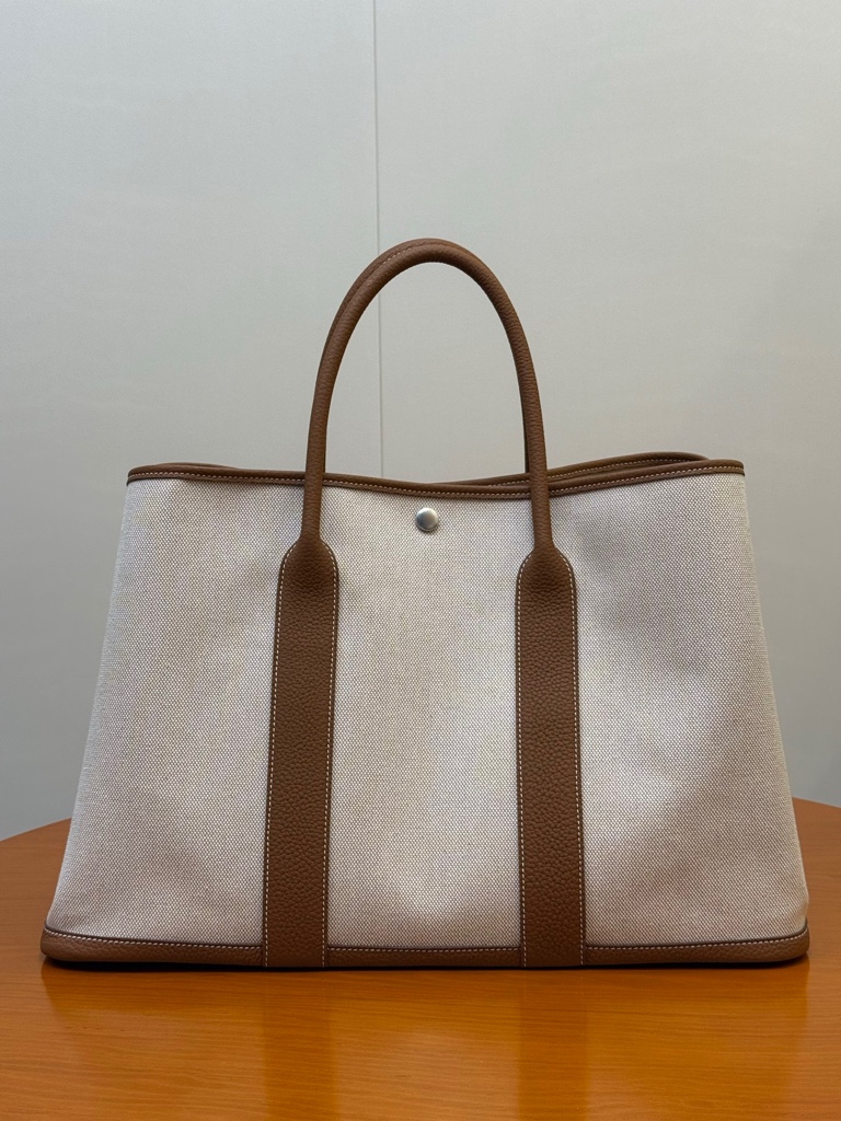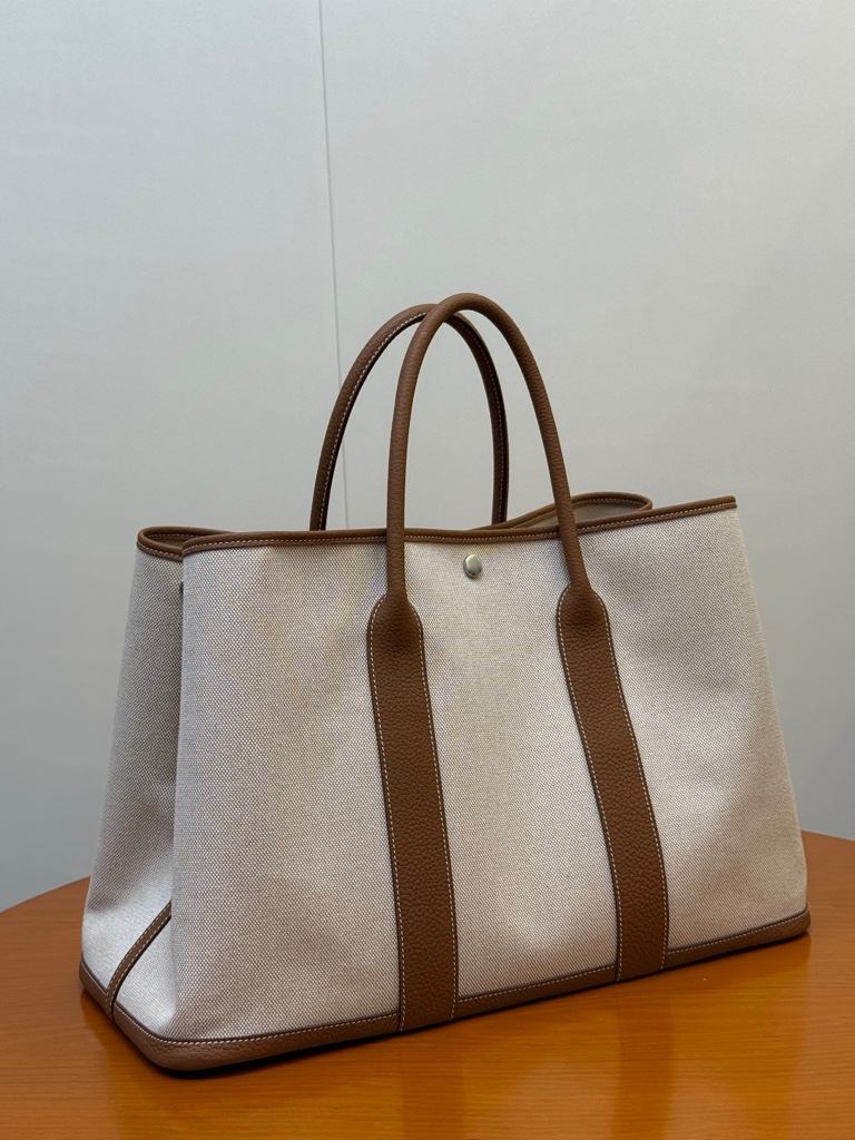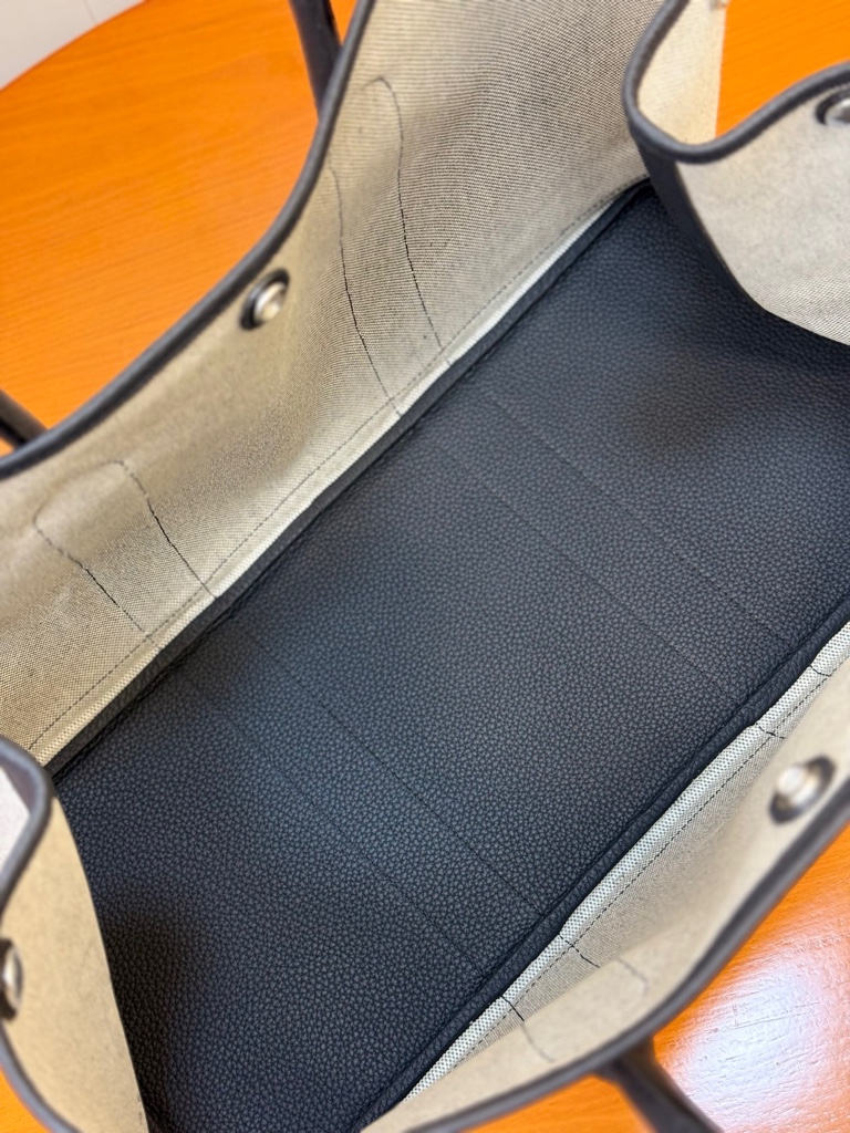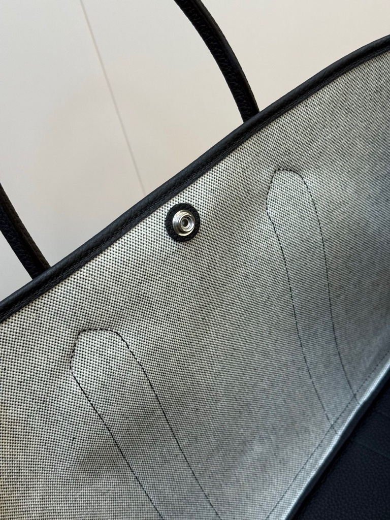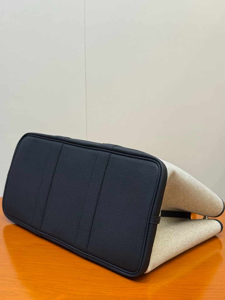 Garden Party 45cm Canvas Stitched Negonda Leather, with Horsebit Buckles. Dimensions: Length 45 x Depth 31 x Width 20 cm. Low-key yet upscale. Suitable for both commuting and outdoor activities.