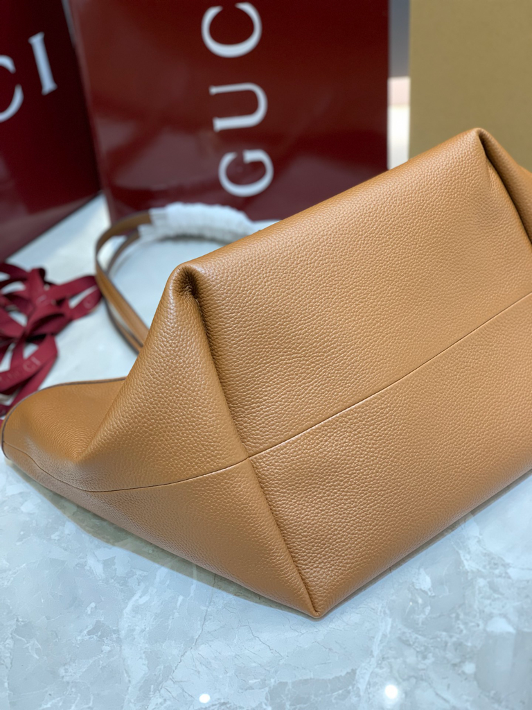 A bag in two styles. The Gucci Totissima series tote bag showcases the dual-sided aesthetics. One side is grain leather, and the other is GG canvas, allowing you to transform into various styles at will. The Totissima name embodies timeless style and functional aesthetics.