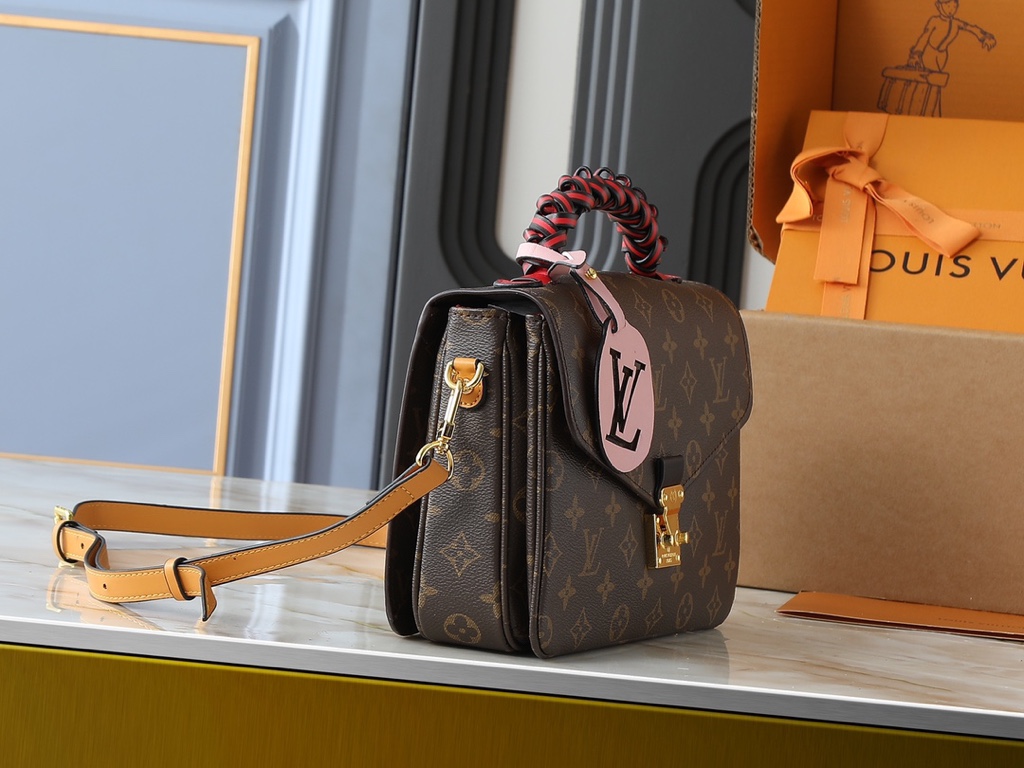 POCHETTE METIS Handbag M44668 Dark Caramel M45152 White M43984 Orange Mailbox Bag Handcrafted with a delicate leather handle featuring edge-stitching, this Pochette Metis handbag exudes a unique charm. Featuring a colorful smooth leather fabric and classic Monogram canvas material, it creates a strong contrast effect. The large LV leather accents add a striking highlight to this small and compact handbag. It comes with a detachable strap for easy hand-free use. 💠 Detailed Specifications: 25.0 x 19.0 x 7.0 cm (Length x Height x Width)