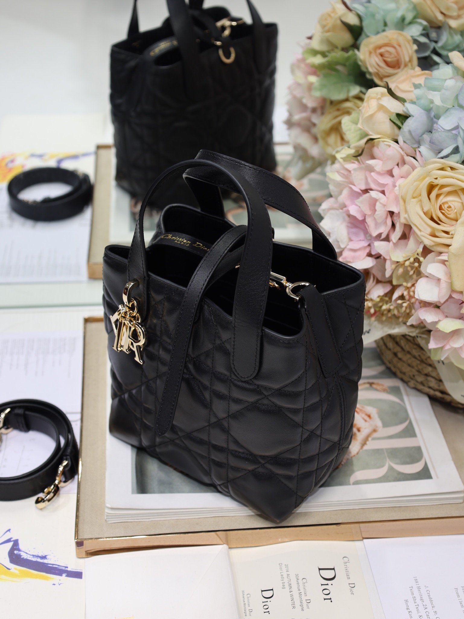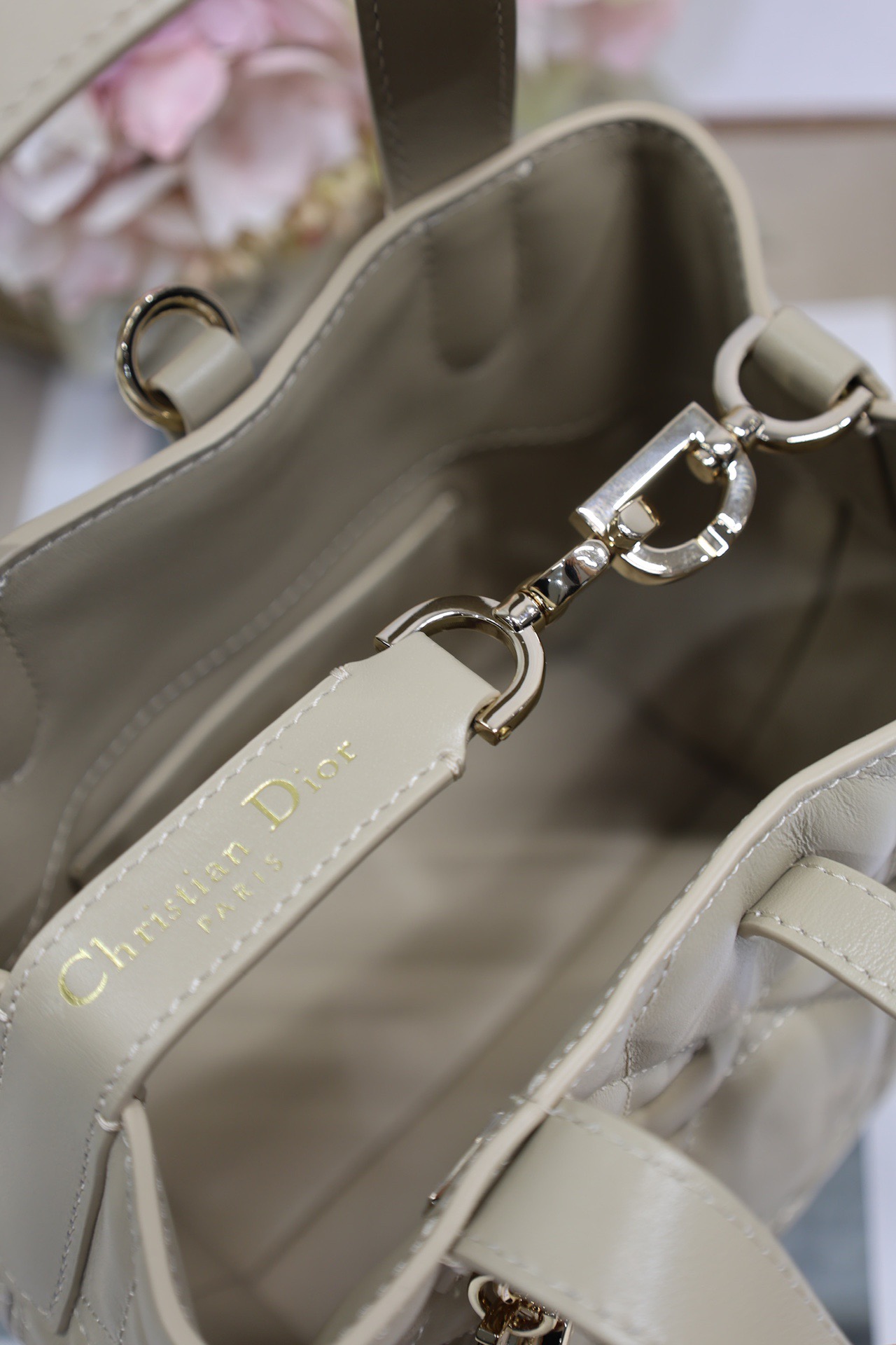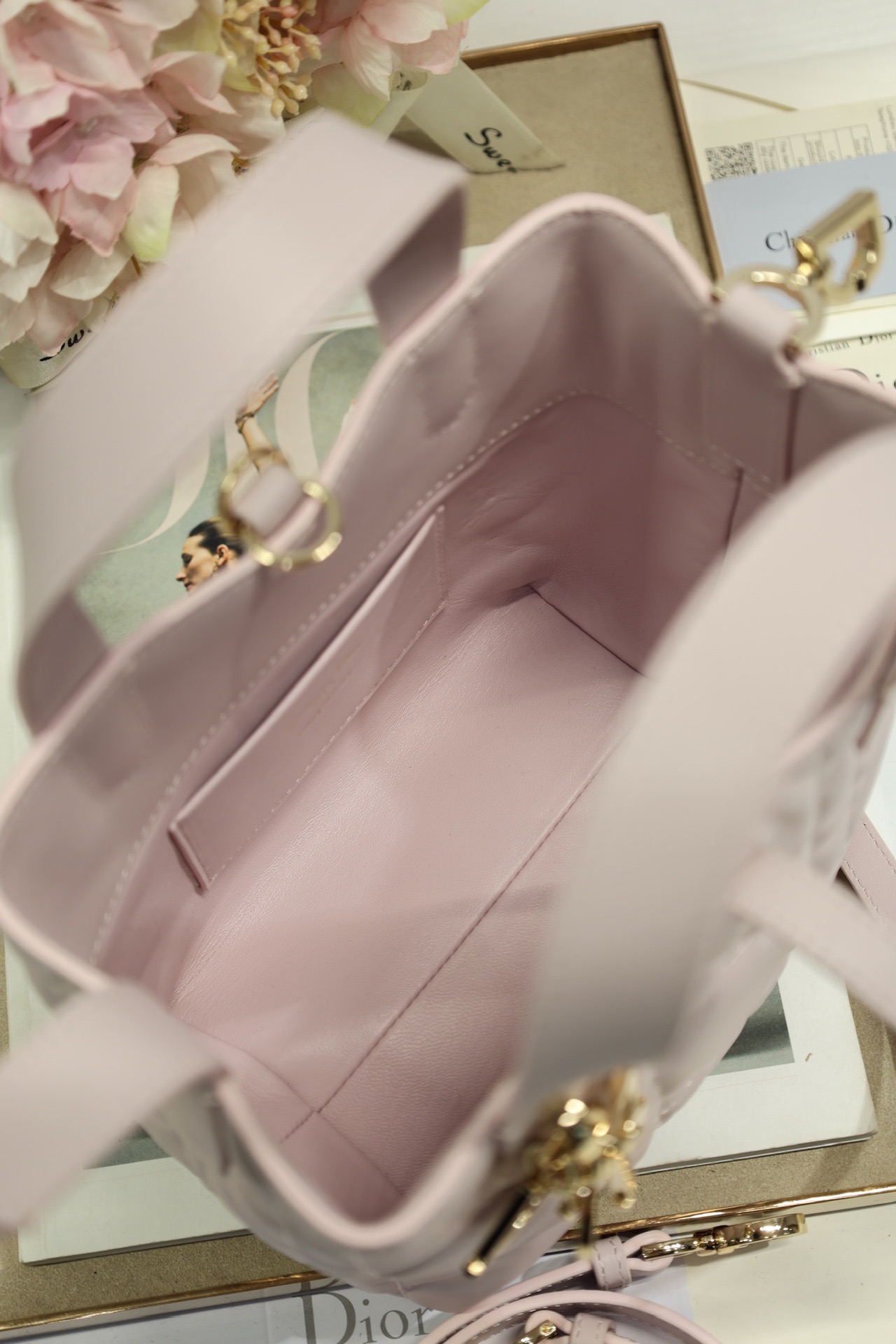 This Toujours vertical handbag is stylish, practical and unique. It is meticulously crafted from light pink cowhide and adorned with a large tartan pattern trim. The spacious interior compartments can hold various daily items. It features a slender leather strap for opening and closing, allowing for safe storage of various items. There is also a Lo-letter D toggle-style clasp that can be adjusted on both sides to enhance the style. The small size model has a leather handle on the top paired with a detachable leather shoulder strap, which can be carried, worn across the body or slung over the shoulder.